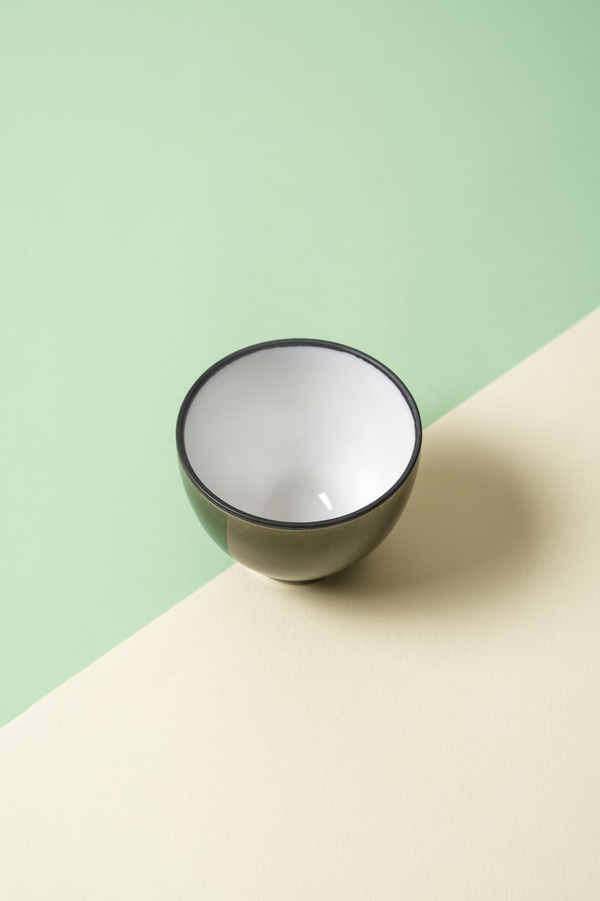 外側の色合いは、伝統的な「織部」をイメージした深みのある緑。